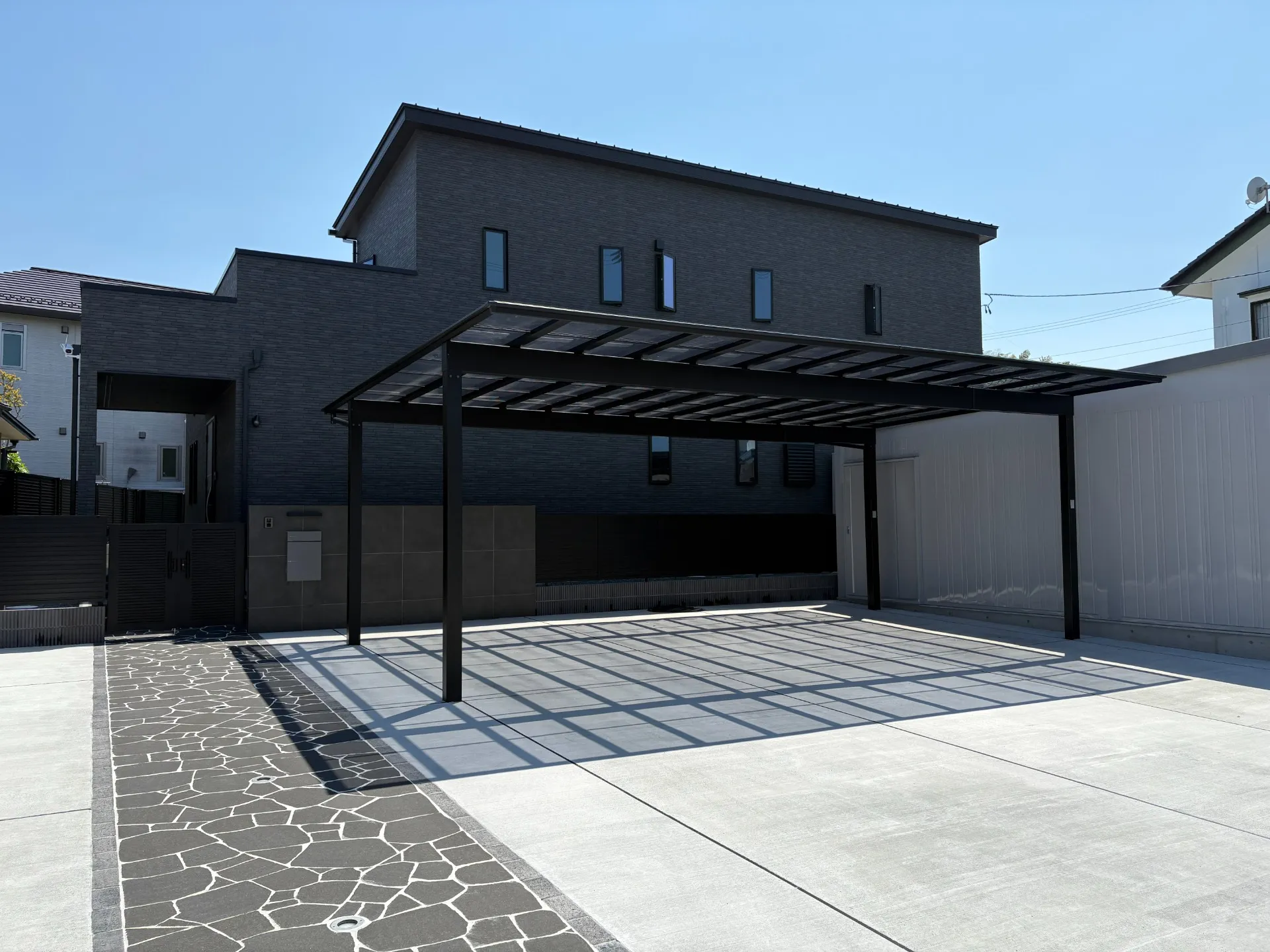 外構にもこだわり、ガレージとカーポートを設置しました。