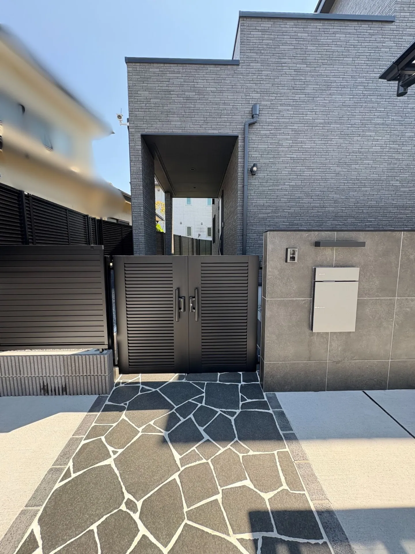 玄関は屋根部分を広めにとって雨にも濡れにくく